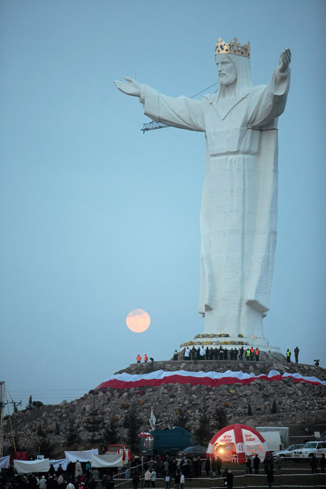Omkring 15.000 mennesker fejrede indvielsen af denne statue af Jesus. Den blev indviet i november 2010 i Swiebodzin, Polen. Pilgrimme og turister strømmede ind mod byen i det vestlige Polen, da verdens største statue af Jesus fik en velkomst af det store publikum. Statuen er 36 meter høj, tre meter højere end den berømte statue af Jesus i Rio de Janeiro, Brasilien. Penge til statuen er doneret fra mange forskellige lande, fra Europa til Canada.