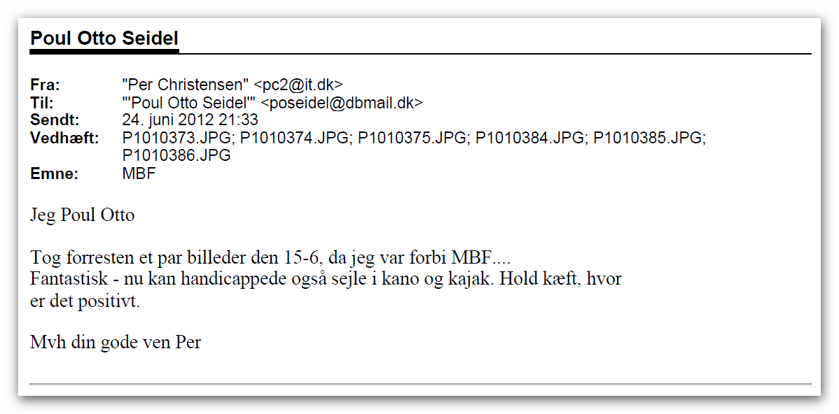 Den 22. marts 2014 fik vi valgt en ny bestyrelse i vor forening. Jeg genopstillede ikke på formandsposten fordi jeg grundet en blodprop i hjernen er blevet svært hanndicappet. Jeg påtog mig en suppleantpost fordi jeg herfra kan støtte og vejlede den nybagte formand. Vi fik overtalt et af vore mest aktive medlemmer af natur- og miljøgruppen at påtage sig en bestyrelsespost. Hermed har vi sikret, at vor forening kan gennemføre sine vigtige natur- og miljøsager. Nu har jeg i i snart 20 år påtaget at varetage disse sager for vor forening. Vor forenings opgave har været at værne om vor fælles natur og vort miljø i Tårnborg . Det er vor natur der er af de største aktiver i vort virkeområde. Lad os understrege med syvtommersøm, at vi i den aktuelle sag på ingen måde er ude efter de handicappede - vi ønsker dem kun det bedste. Vi kendte udmærket problemstillingen i sagen fra tidligere - vor gruppe fik således en e-mail for 9 år siden fra et gruppemedlem: