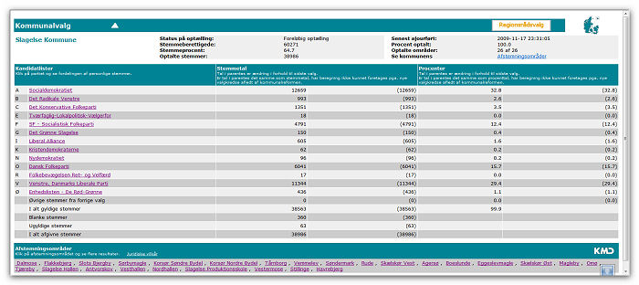 Ved at klikke her får du ovenstående tabel op i et nyt vindue - her er alle tal om sidste kommunevalg i NySlagelse kommune. Her kan du se stemmeafgivningen på de enkelte valgsteder og antallet af personlige stemmer og bevægelser i forhold til foregående kommunevalg. Valget i 2005 var dog atypisk.